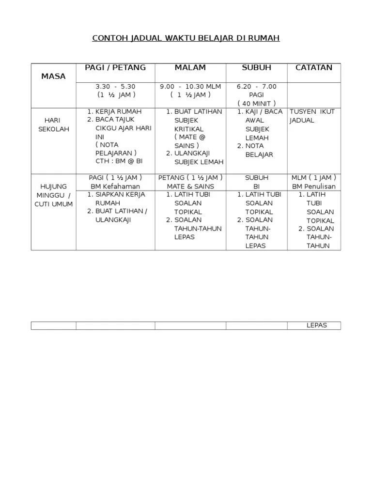 Jadual Belajar Spm Di Rumah : Contoh Jadual Harian Di Rumah Jadual Waktu Sekolah Page 1 Line 17qq Com Jangan Biarkan Rumah Cuitan Dokter